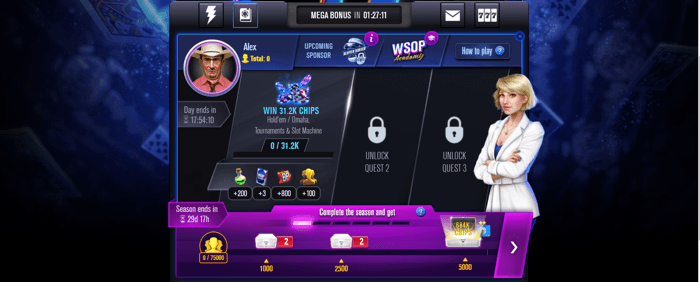 Each day, whilst exploring through the WSOP social app, you are presented with multiple quests and challenges to be able to complete for a range of different prizes.